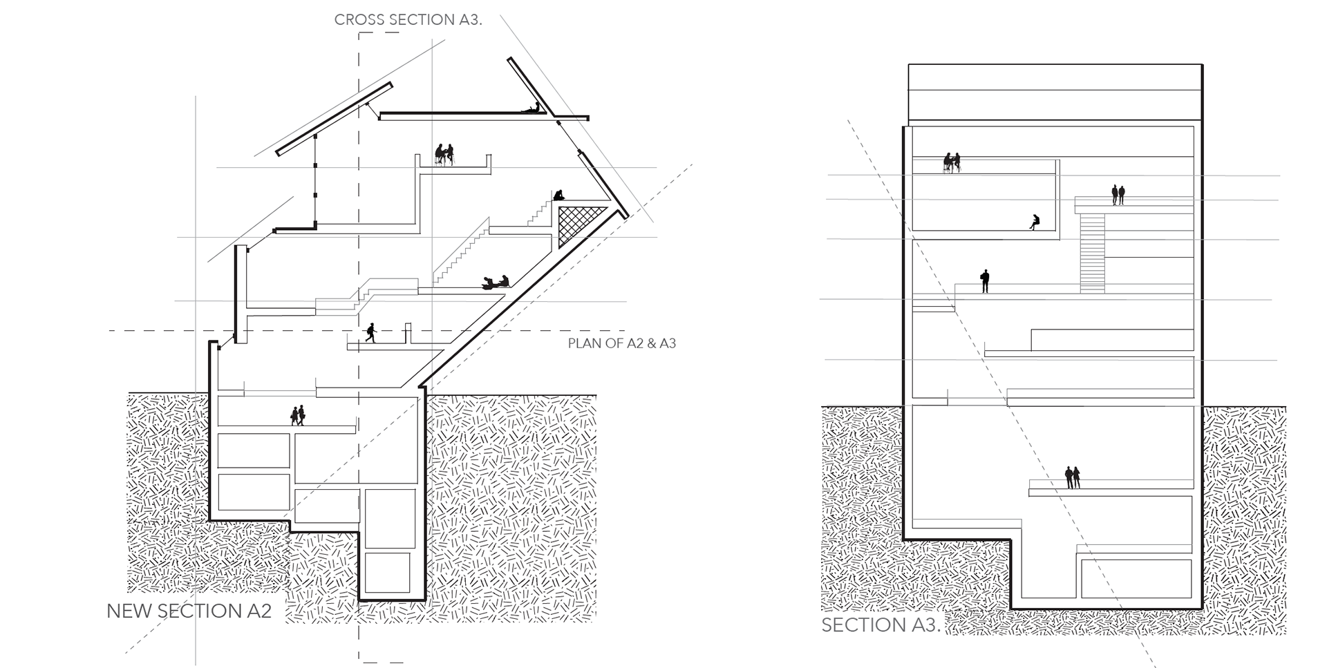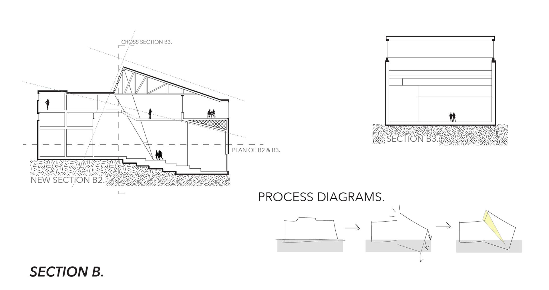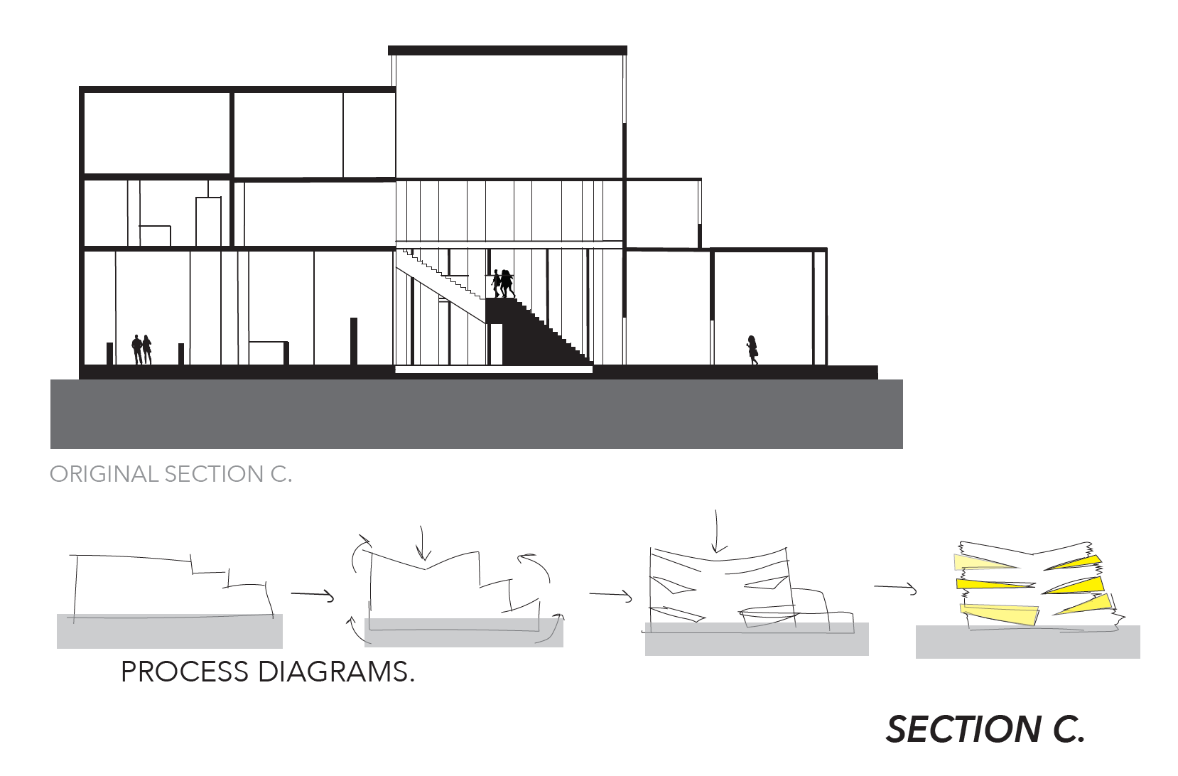 Spring 2nd year. Studio: Rachel Dickey. Studies in intentionally "fractured" campus architecture.
